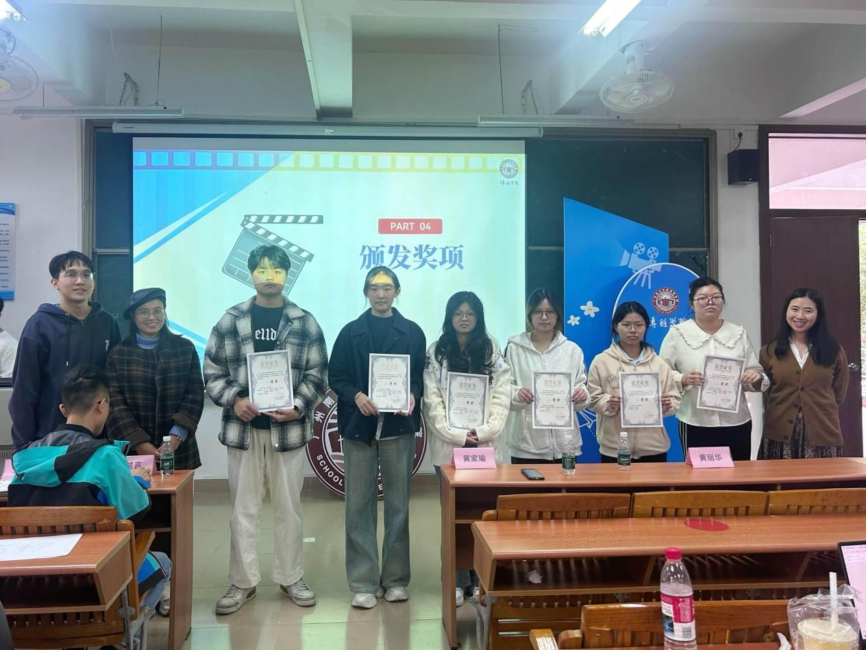展示环节结束后,黄家瑜老师作总结点评。他表示,将微视频引入通识课程,是培养学生数字素养与创造性表达的有益尝试。本届作品在选题、技术运用与思想深度上均有显著提升,展现出跨学科整合与回应现实的能力。同时,他也建议未来作品应进一步强化镜头稳定性与叙事衔接,使技术更好地服务于人文表达。黄老师强调,学院将持续搭建平台,推动通识教育在数字化时代的深入发展。