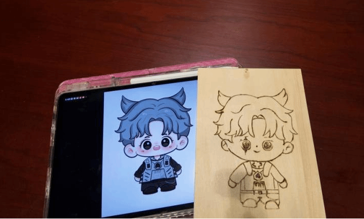 烫画课堂里,在史文杰老师的指导下,先用铅笔勾勒心仪图案,再通过调整温度与力度,小心翼翼地烙制线条、塑造明暗。从简体小猫再到动漫人物发丝的飘逸。每一处细节的打磨都让学生们深刻体会到“火与木的对话”中蕴含的匠心,不少学生还结合现代审美,在作品中融入创意元素,让传统技艺焕发新活力。