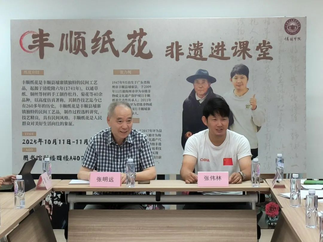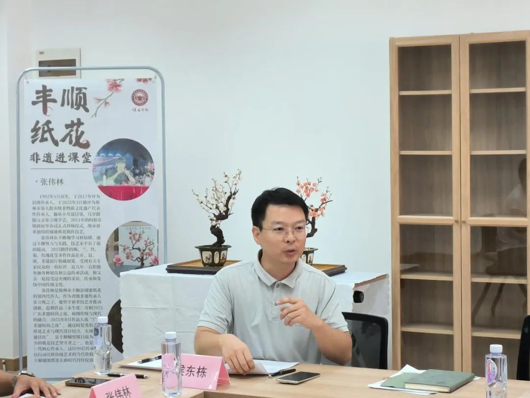 丰顺纸花传承人张伟林先生在发言中坦言:家族传承的纸花技艺亟需新鲜血液,此次进校园既是希望借助高校平台扩大非遗影响力,更期待师生能主动学习,让技艺“活”在校园。张老师还表示将对传承丰顺纸花具有强烈意愿的学生招收为徒弟,共同进行纸花的传承。他提出,后续计划通过网络平台分享纸花制作过程,进一步拓宽传承渠道,同时欢迎感兴趣的师生随时交流,共同探索技艺创新方向。